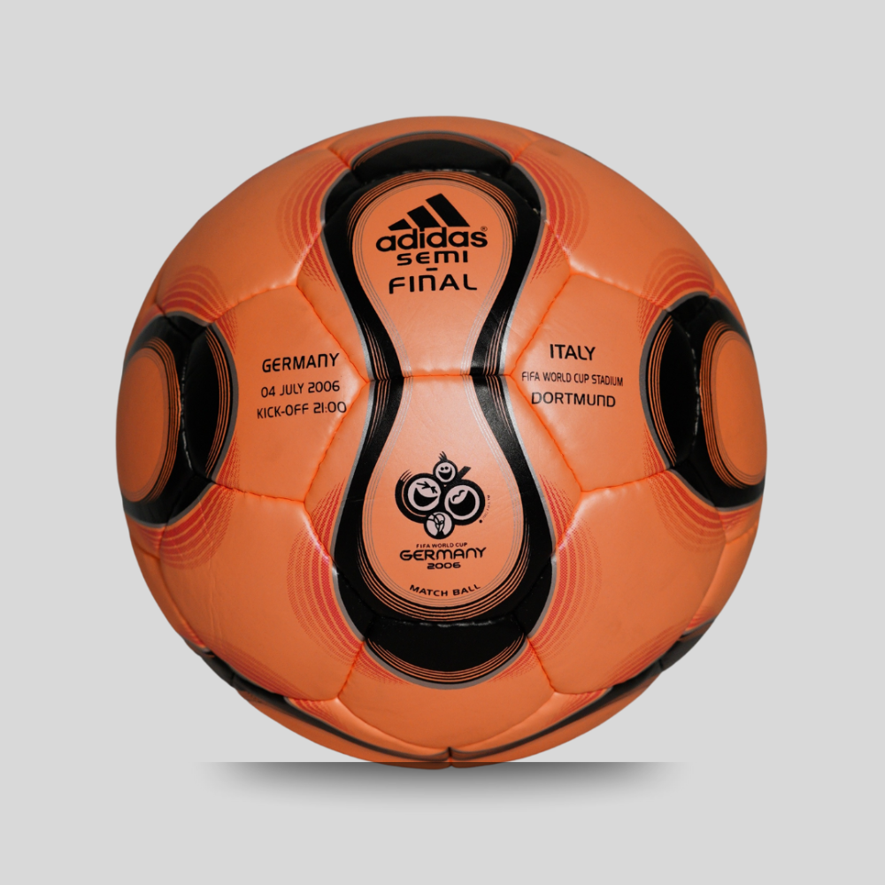 Experience the excitement and precision of the 2006 FIFA World Cup semi-finals with the Teamgeist Germany football. Made by Adidas, this ball features advanced stitching for optimal control and accuracy. Get ready to dominate the field and make your mark in history with this high-quality, tournament-level football.